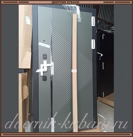 - Внешняя отделка : металл с порошково-полимерным покрытием, цвет окраса металла - Чёрный муар + фрезерованная МДФ панель 10 мм. с чёрным декоративным пластиковым молдингом, покрытие - ПВХ, цвет покрытия панели - глубокий тёмно-зелёный (матовый);