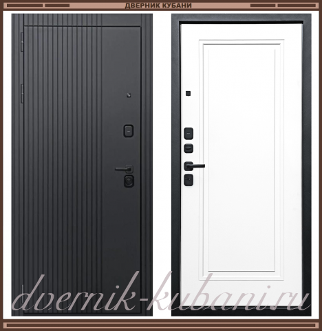Входная металлическая дверь ФРАНТ Чёрный матовый / Белый матовый 110 мм Россия