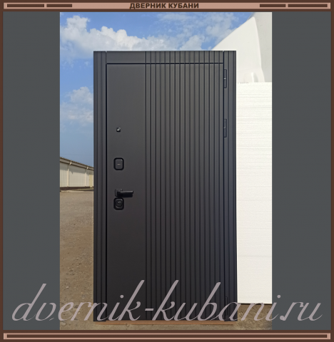 - Внешняя отделка : металл с порошково-полимерным покрытием, цвет окраса металла - Чёрный муар + фрезерованная МДФ панель 16 мм. с антивандальным ПВХ покрытием цвет покрытия панели - Чёрный матовый;