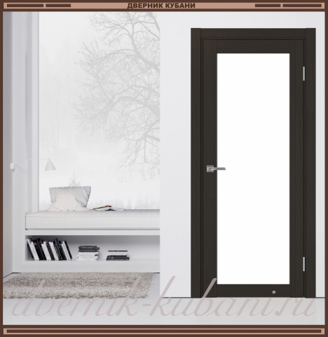 Описание "Межкомнатная дверь ТУРИН 501.2 ЭКО-шпон цвет - Венге, стекло - Лакобель Белое"