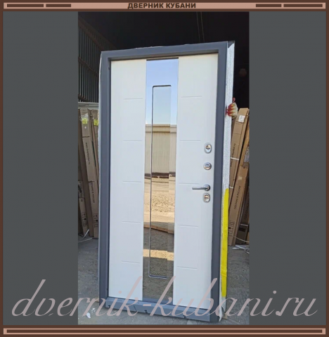 Описание "Входная металлическая дверь ФЕРУМ ТЕРМО Серый Муар / винорит Белый с 2-х камерным стеклопакетом 107 мм Россия"