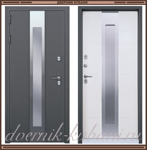Входная металлическая дверь ФЕРУМ ТЕРМО Серый Муар / винорит Белый с 2-х камерным стеклопакетом 107 мм Россия